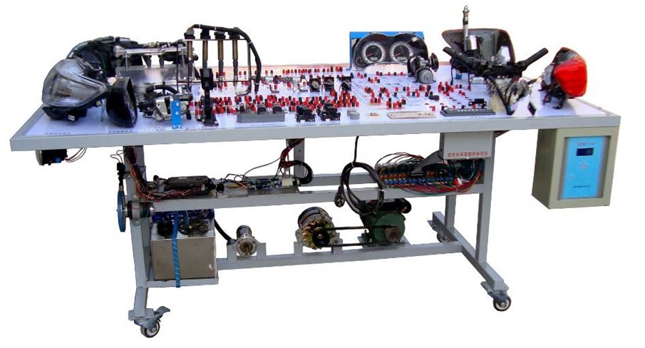 汽車電氣設(shè)備實(shí)訓(xùn)室。汽車電器設(shè)備實(shí)訓(xùn)室包含有汽車燈光系統(tǒng)、車載網(wǎng)絡(luò)系統(tǒng)、全車電器系統(tǒng)、汽車啟動(dòng)系統(tǒng)、汽車空調(diào)系統(tǒng)、全車線路試驗(yàn)臺(tái)、等實(shí)訓(xùn)教學(xué)設(shè)備。該實(shí)訓(xùn)室可以承擔(dān)《汽車構(gòu)造》、《汽車電器設(shè)備》、《汽車電控系統(tǒng)》、《汽車檢測(cè)與診斷》等課程的實(shí)踐教學(xué)任務(wù)。可以用于研究、分析全車電器系統(tǒng)、燈光系統(tǒng)、儀表系統(tǒng)等電器設(shè)備的電路及功能。利用這些系統(tǒng)進(jìn)行實(shí)踐教學(xué),使學(xué)生熟悉汽車電器的結(jié)構(gòu)和工作原理,掌握各個(gè)系統(tǒng)的基本組成電路,掌握主要電路的檢測(cè)方法和系統(tǒng)的故障特征,從而具有一定的檢測(cè)和調(diào)校能力。