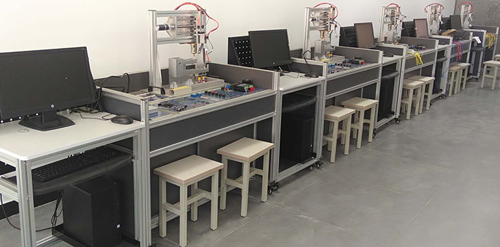 單片機(jī)控制功能實(shí)訓(xùn)考核裝置采用烤漆鋼板制作的臺(tái)式結(jié)構(gòu)。實(shí)訓(xùn)臺(tái)的抽屜柜用于存放實(shí)訓(xùn)模塊,抽屜柜與臺(tái)面之間布置實(shí)訓(xùn)模塊安裝支架,最上一層是工作臺(tái)臺(tái)面。用于技能競(jìng)賽時(shí)在臺(tái)面上放置設(shè)備安裝底板,在底板上安裝試題擬定的單片機(jī)控制裝置需要的模塊,連接控制電路,編寫(xiě)的控制程序輸入單片機(jī)后,按下運(yùn)行指令開(kāi)關(guān),單片機(jī)控制裝置就按程序運(yùn)行。