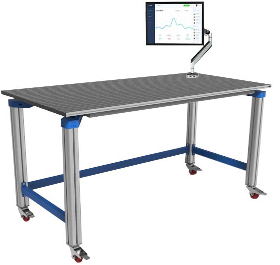 1.采用工業(yè)鋁合金型材框架設(shè)計,臺面為鋁合金型材操作板,單根型材截面≥20×80mm,型材槽間距≤40mm,桌腳截面≥70×70mm。