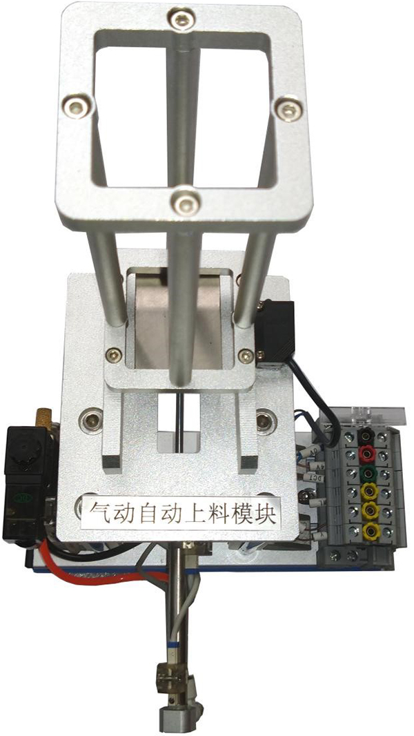 2)系統(tǒng)由按鈕模塊、氣動自動上料模塊、傳輸線模塊和物料檢測及分揀模塊和輔助器件等組成。