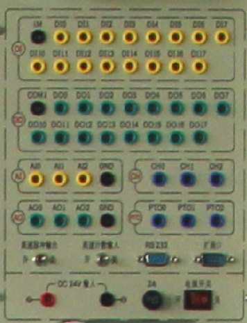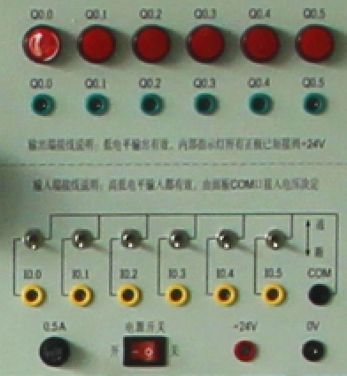 提供6路輸入、6路輸出等接口,輸入、輸出端電壓可自由切換0V24V,輸出端由指示燈的亮滅來指示PLC輸出口的狀態(tài),面板印有清晰的說明和端口絲印。通過基本指令練習(xí),讓學(xué)生掌握PLC輸入、輸出的外圍接線和工作原理。