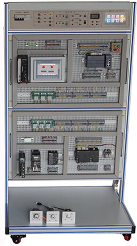 1)提供實訓(xùn)所需的三相交流380V、單相220V電源接口,具有啟動、停止、急停系統(tǒng),設(shè)有漏電保護(hù)、電源指示、過流保護(hù)等功能。