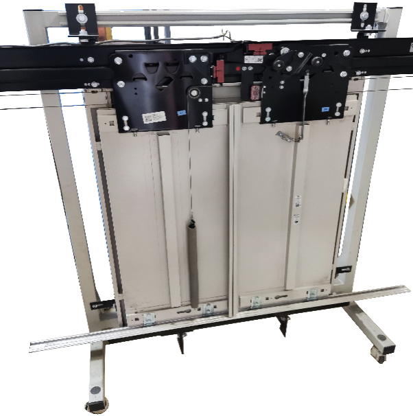 要求該裝置至少由鋼結(jié)構(gòu)框架、層門等部件組成。按電梯開門方式的不同,設(shè)備至少分為中分門跟旁開門兩種類型。整體外觀要求簡潔、實(shí)用,能夠直觀地看到層門機(jī)構(gòu)的全部器件及整個(gè)機(jī)械動(dòng)作過程。
