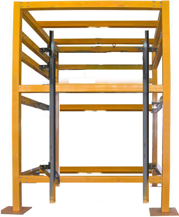 電梯井道實訓裝置采用真實的電梯轎廂導軌、轎廂架、轎廂緩沖器、對重導軌、護欄、對重緩沖器等器件,學生借助電梯井道系統(tǒng)設(shè)計圖在模擬井道頂部放樣線并對井道設(shè)備按順序進行安裝與測量,使其符合規(guī)范要求,并通過轎廂架和對重架的上下運動模擬其在井道導軌上的運行并輔助檢驗導軌實際安裝質(zhì)量。