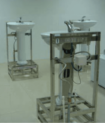高級感應洗臉盆實訓裝置能供學生根據(jù)安裝規(guī)范,使用專用工具,將洗面器、立柱、感應水龍頭、角閥、軟管、下水管及五金配件在不銹鋼平臺上組裝成一個具有完整功能的感應洗臉盆,并為立盆安裝進排水管路,最后進行進水排水檢驗。