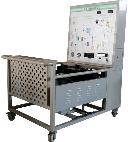 2.由三相電機(jī)做為動(dòng)力源,帶動(dòng)空調(diào)壓縮機(jī)工作。操作空調(diào)控制面板,可真實(shí)演示汽車手動(dòng)空調(diào)系統(tǒng)的工作過程以及工作原理。