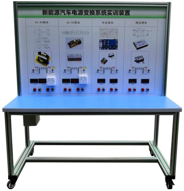 DC-AC模塊(12V轉(zhuǎn)220V)、點火開關(guān)、AC-DC模塊(220V轉(zhuǎn)12V)、升壓模塊(12V轉(zhuǎn)24V)、降壓模塊(24V轉(zhuǎn)12V)、發(fā)光二極管閃光燈燈條、指示燈、操作開關(guān)、接觸器、急停開關(guān)、一體化全鋁合金型材搭建的移動臺架(1500×700×1700mm 帶自鎖腳輪裝置,帶安裝檢測端子的原理面板,面板1448×940mm)、設(shè)備操作說明書。
