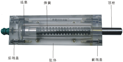 2、彈簧回位油缸的缸體,端蓋等均采用了進(jìn)口透明有機(jī)玻璃材料精制而成,透明清晰,頂桿采用45#中碳鋼材料,并配合油接頭、密封圈、內(nèi)六角螺絲等標(biāo)準(zhǔn)件裝配而成,通過它可明確地觀察到活塞、頂桿、油封、油孔、彈簧等結(jié)構(gòu)及其運(yùn)行過程,具有形象逼真,性能可靠等腰三角優(yōu)點(diǎn),它即可作為教學(xué)模型,也可作為液壓實(shí)驗(yàn)元件進(jìn)行實(shí)驗(yàn)演示。