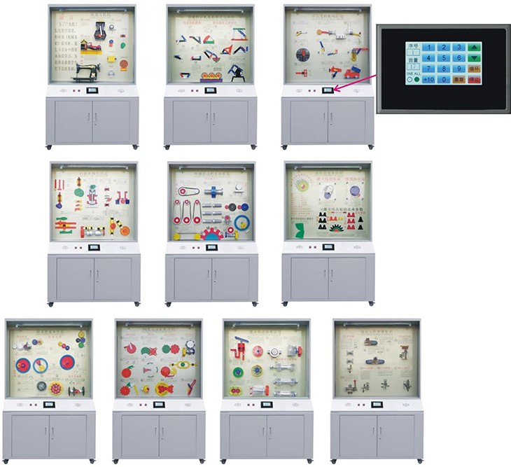 根據(jù)全國技工學校機械類通用教材《機械基礎(chǔ)》示教陳列柜是一套電化教學設(shè)備。本陳列柜共分十個柜,陳列柜通過機械模型或?qū)嵨,配合相?yīng)的圖文資料,形象地展示與解說機械基礎(chǔ)的基本知識,加強學生對通用機械基礎(chǔ)的類型、結(jié)構(gòu)特點及其設(shè)計的感性認知,為進一步學習機械基礎(chǔ)奠定基礎(chǔ)。