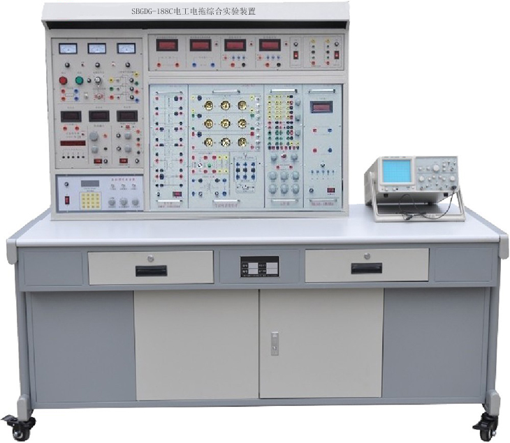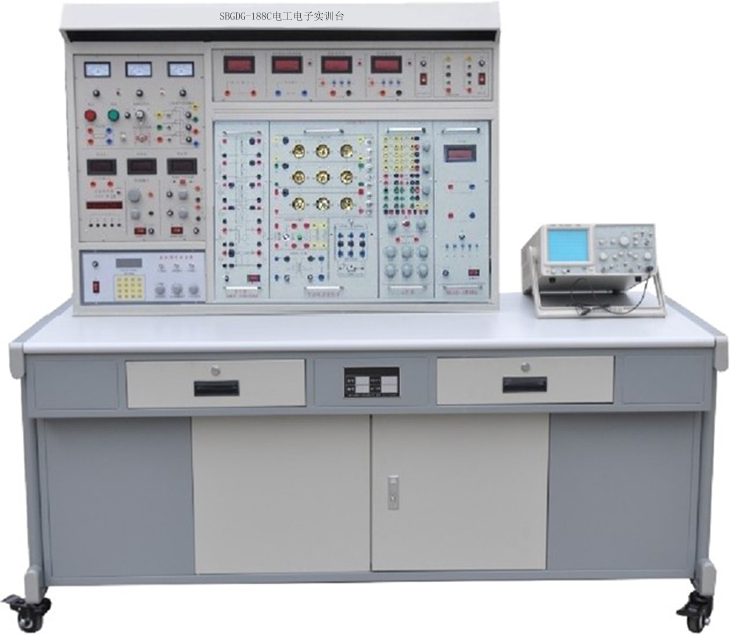 電工電子實驗臺“通用電工實驗設(shè)備”是根據(jù)職業(yè)學校、技工學校、中等專業(yè)學校的電工技術(shù)基礎(chǔ)、電工技能訓練、電工學等有關(guān)教學實驗大綱的要求而設(shè)計的。內(nèi)容有直流電路、交流電路、正弦與正弦電路、磁與電磁。該裝置符合勞動部、機電部頒發(fā)的中級技術(shù)工人考核標準電工部分的內(nèi)容,是理論學習、實驗驗證、技能訓練為一體的現(xiàn)代化電工實驗成套設(shè)備。電工電子實驗臺培養(yǎng)學生了解和掌握電子元器件及電工電子基本原理的能力,培養(yǎng)學生熟練使用電子儀器儀表的能力,為今后的專業(yè)實驗、實訓打下堅實的基礎(chǔ)。電工電子實驗室主要儀器設(shè)備:電工電子實驗臺、常用儀器儀表等。電工電子實驗臺主要實驗或?qū)嵱栱椖浚悍謩e開設(shè)強電和弱電的課程實驗和課程設(shè)計。實驗涉及課程包括電工學、模擬電路技術(shù)和數(shù)字電路技術(shù),主要實訓課程有常用半導(dǎo)體材料及伏安特性的測試、集成放大電路、直流穩(wěn)壓電路、示波器的使用、數(shù)碼顯示電路、集成觸發(fā)器特性、555定時器、單穩(wěn)態(tài)觸發(fā)器、等非電類專業(yè)基礎(chǔ)實驗課。通過驗證性、設(shè)計性相結(jié)合的實驗項目,使學生掌握基本電路模塊的設(shè)計、測試技術(shù),通過理論知識分析實驗現(xiàn)象和排除故障的過程,使學生了解了系統(tǒng)設(shè)計與工程設(shè)計過程,提高了學生的實際動手能力。電工電子實驗臺、電子綜合實訓設(shè)備,同時包含示波器、數(shù)字萬用表等配套設(shè)備?砷_設(shè)我校醫(yī)學影像技術(shù)專業(yè)和醫(yī)用電子儀器與維護專業(yè)的《電子學基礎(chǔ)》、 《電工技術(shù)》、 《模擬電子技術(shù)》及《數(shù)字電子技術(shù)》等工學基礎(chǔ)類課程的實驗實訓。