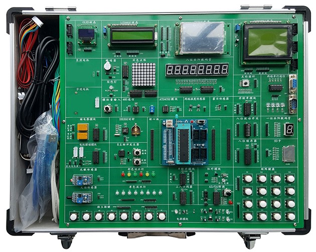 單片機(jī)實(shí)訓(xùn)實(shí)驗(yàn)臺(tái),單片機(jī)技術(shù)實(shí)驗(yàn)箱,單片機(jī)與嵌入式實(shí)驗(yàn)室,萬(wàn)能單片機(jī)實(shí)驗(yàn)開(kāi)發(fā)系統(tǒng)、單片機(jī)開(kāi)發(fā)應(yīng)用技術(shù)綜合實(shí)驗(yàn)裝置是電子與通信、自動(dòng)化信息工程技術(shù)、計(jì)算機(jī)基礎(chǔ)課實(shí)訓(xùn)室等課程實(shí)驗(yàn)實(shí)訓(xùn)。單片機(jī)實(shí)驗(yàn)室是專(zhuān)為電子、通信和自動(dòng)化等專(zhuān)業(yè)而設(shè)立,單片機(jī)實(shí)驗(yàn)室設(shè)備適應(yīng)《微機(jī)原理與接口技術(shù)》《單片機(jī)原理與應(yīng)用》課程的需要,滿足了正常實(shí)驗(yàn)教學(xué)的同時(shí),設(shè)立了開(kāi)放性實(shí)驗(yàn)室功能,充分調(diào)動(dòng)了學(xué)生學(xué)習(xí)的積極性,方便了學(xué)生和老師實(shí)驗(yàn)程序的編制和調(diào)試。單片機(jī)實(shí)訓(xùn)設(shè)備主要承擔(dān)《單片機(jī)原理》、《微機(jī)接口與技術(shù)》等相關(guān)課程的實(shí)驗(yàn)、課程設(shè)計(jì)及畢業(yè)設(shè)計(jì)。