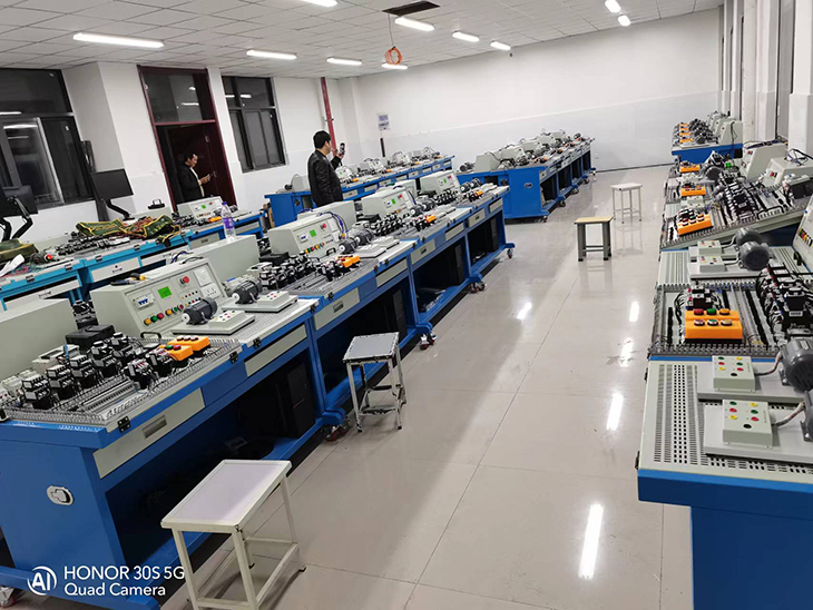 電氣安裝與維修實訓室包含了電氣安裝與維修設(shè)備、電氣安裝與維修考核裝置、電氣照明設(shè)備安裝調(diào)試技能實訓裝置該設(shè)備包含的實訓功能有:照明電路裝調(diào)實訓;電力拖動控制線路裝調(diào)實訓;PLC控制技術(shù)應(yīng)用實訓;變頻器控制技術(shù)應(yīng)用實訓;觸摸屏技術(shù)應(yīng)用實訓;傳感器技術(shù)應(yīng)用實訓;步進、伺服電機的控制實訓;CA6140車床電路檢修、M7120磨床電路檢修、T68鏜床電路檢修、X62銑床電路檢修等,是電氣自動化專業(yè)、機電一體化專業(yè)中多門核心課程的通用實訓設(shè)備。