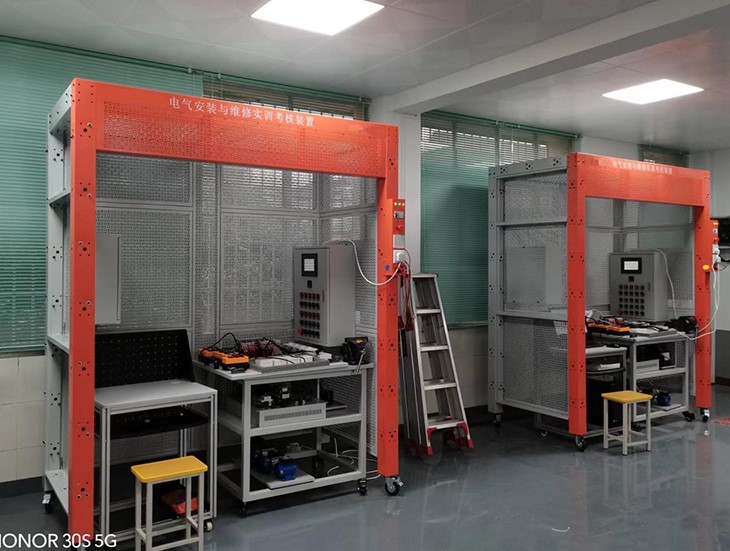 電氣安裝與維修實訓考核裝置是根據(jù)工廠電氣安裝和室內(nèi)電氣安裝等維修 電工和電氣安裝工實訓鑒定要求開發(fā)的一種通用實訓平臺。 適合于各類職業(yè)院校 和技工學校維修電工、 電氣安裝工、水電工等有電氣實訓要求的相關專業(yè)的作為 公共實訓平臺使用。 采用鋼制網(wǎng)孔板和鋼制專用型材組接而成,安裝有自鎖式腳輪,方便移動和使用。裝 置表面噴塑,色彩穩(wěn)重氣派。電氣安裝與維修實訓裝置設計高度以人站在一級人字梯即可方便操作的高度,既安 全又能使使用者感受到施工現(xiàn)場環(huán)境。 橫向、 叢向寬度合適, 可以模擬現(xiàn)場線路的轉向布置。